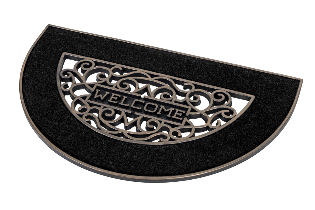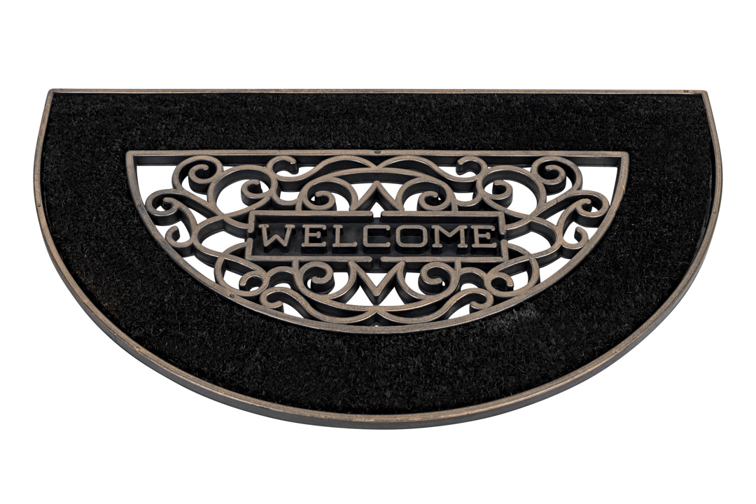 Ga naar de inhoudJe bent hier: Home / Deurmatten / Decoratieve halfronde rubber kokosmat zwart, Welcome