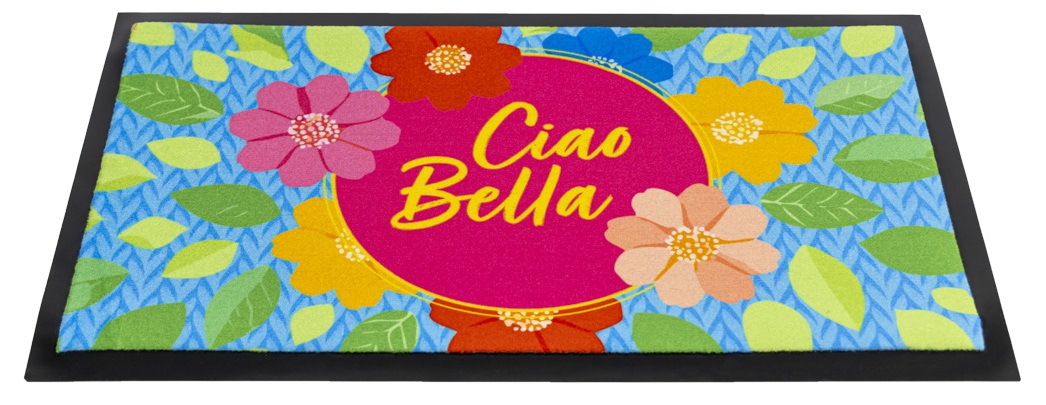 Deurmat “Ciao Bella” – origineel Moederdagcadeau van polyamide met antislip vinyl. Houdt vuil buiten en geeft een warm welkom! Bestel deze bij Onlinemattenshop.