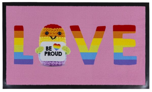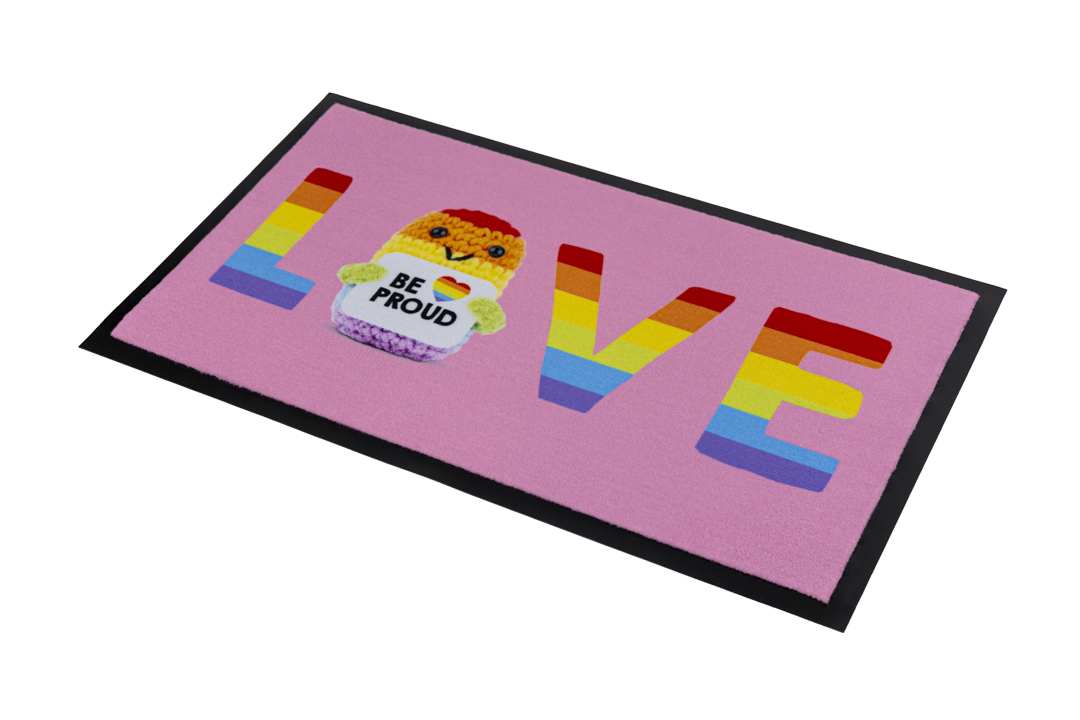 De roze deurmat “Love” is een duurzame polyamide mat met antislip vinyl. Ideaal voor tienerkamers, houdt vuil buiten en geeft een vrolijk welkom!