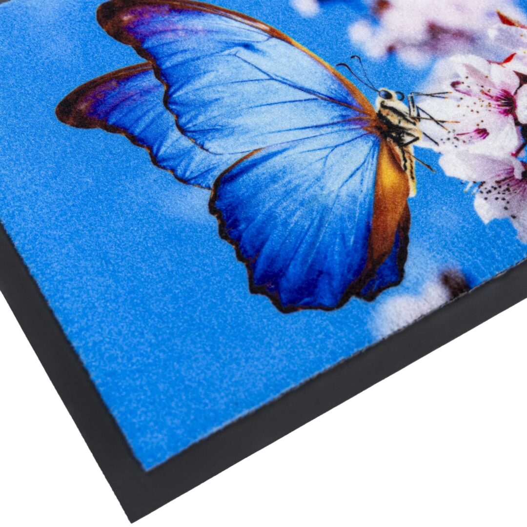 Elk huis heeft een goede deurmat nodig. Hiermee zorgt u dat vuil buiten blijft of in ieder geval op de deurmat zodat uw vloer schoon blijft. Behalve praktisch kan een deurmat natuurlijk ook leuk zijn zoals u ziet aan deze deurmat met een foto van een vlinder. Als echte dierenliefhebber laat u dat zien met deze deurmat. Iedereen inclusief uzelf wordt elke keer begroet door deze vlinder. Houdt uw vloeren schoon en breng wat sfeer aan bij de voordeur!