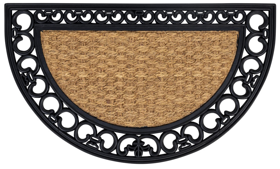 Rubber kokosmat met sierlijke rubberen rand, halfrond