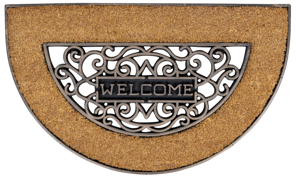 Decoratieve halfronde naturelle rubber kokosmat, Welcome