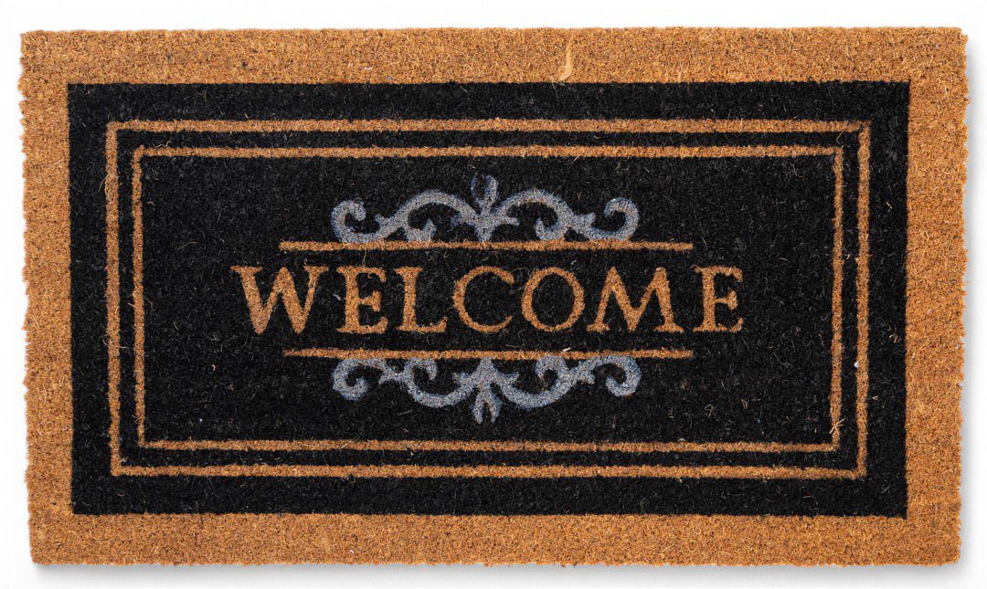 Het hebben van een kokosmat bij de voordeur biedt veel voordelen. Door de haren wordt vuil eenvoudig en moeiteloos van de schoenen geschraapt en blijft het hier tussen hangen. Zo voorkomt u dat u vuil van buiten meeneemt uw huis in. Deze klassieke kokosmat is bedrukt met Welcome op een zwarte achtergrond en wie wordt er nu niet graag van aan de voordeur vriendelijk begroet! Deze mooie kokosmat geeft een huiselijk gevoel af al voor dat u naar binnen bent gegaan.