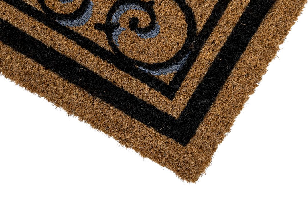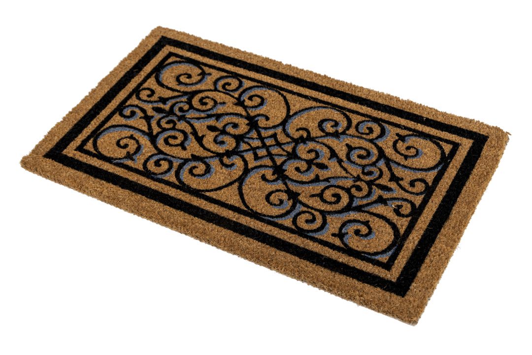 Het hebben van een kokosmat bij de voordeur biedt veel voordelen. Door de haren wordt vuil eenvoudig en moeiteloos van de schoenen geschraapt en blijft het hier tussen hangen. Zo voorkom je dat je vuil van buiten meeneemt jouw huis in. Deze kokosmat is bedrukt met een krullig design wat er heel luxueus uitziet. Deze mooie kokosmat geeft een huiselijk gevoel af al voor dat u naar binnen bent gegaan.