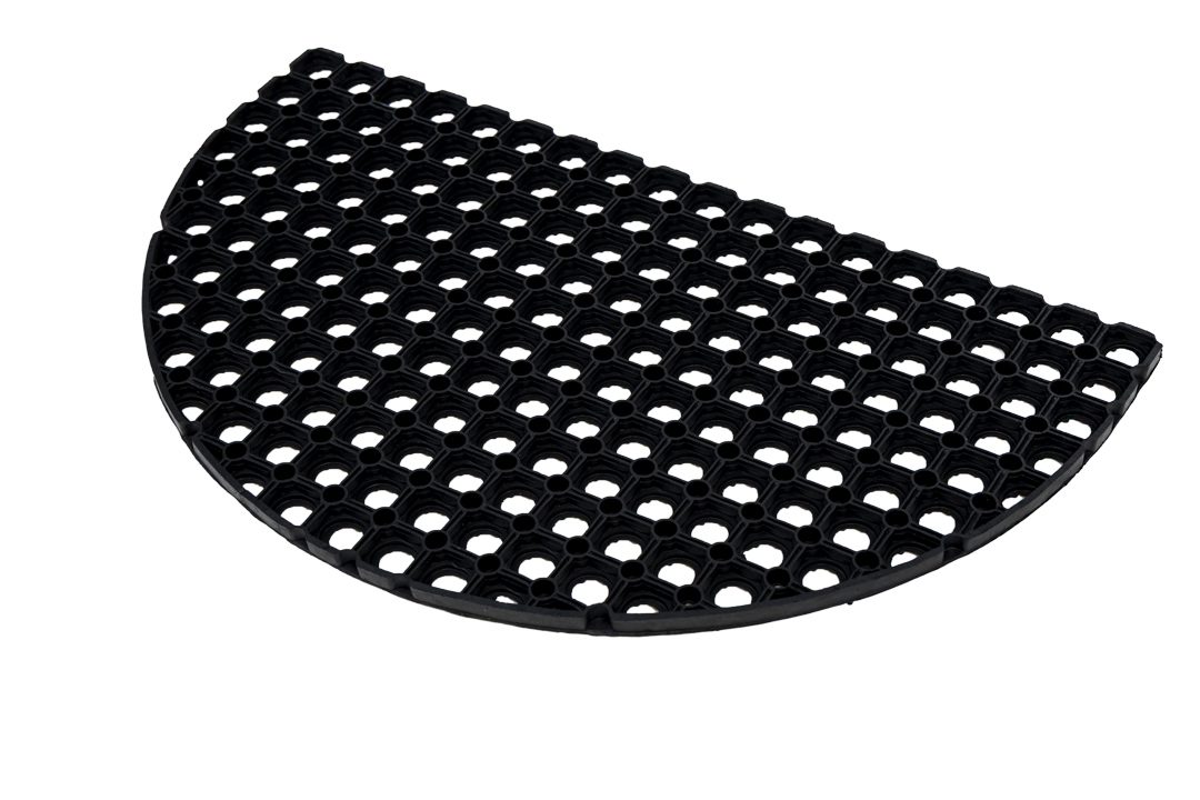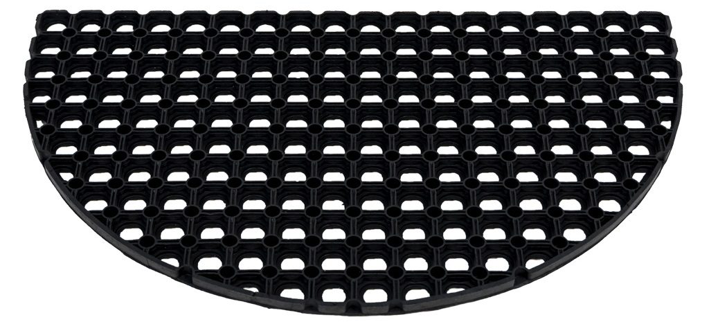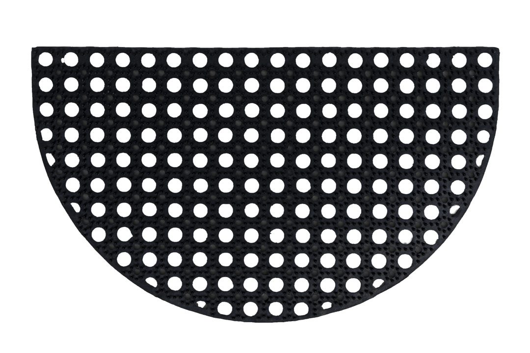Deze halfronde rubberen ringmat van 22 mm dik is verkrijgbaar in het formaat 45x75cm en uiterst geschikt voor buitengebruik. Het rubber materiaal is van zichzelf antislip en uitglijden hierop is dan ook haast onmogelijk. De schoenen worden snel en makkelijk schoon geschraapt en de mat zelf kost u nauwelijks werk in onderhoud.