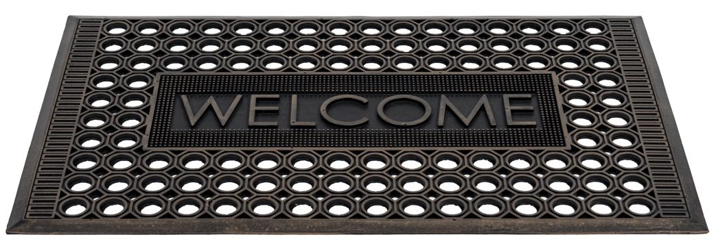 Een rubberen schraapmat met leuk dessin en tekst Welcome in koperkleur is een erg goede optie als u op zoek bent naar een deurmat die u jaren kunt gebruiken. Bestel deze decoratieve rubberen mat bij Onlinemattenshop.be.