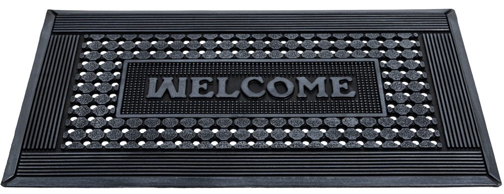 Een rubberen schraapmat met leuk dessin en tekst Welcome in zilverkleur is een erg goede optie als u op zoek bent naar een deurmat die u jaren kunt gebruiken. Bestel deze decoratieve rubberen mat bij Onlinemattenshop.be.