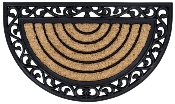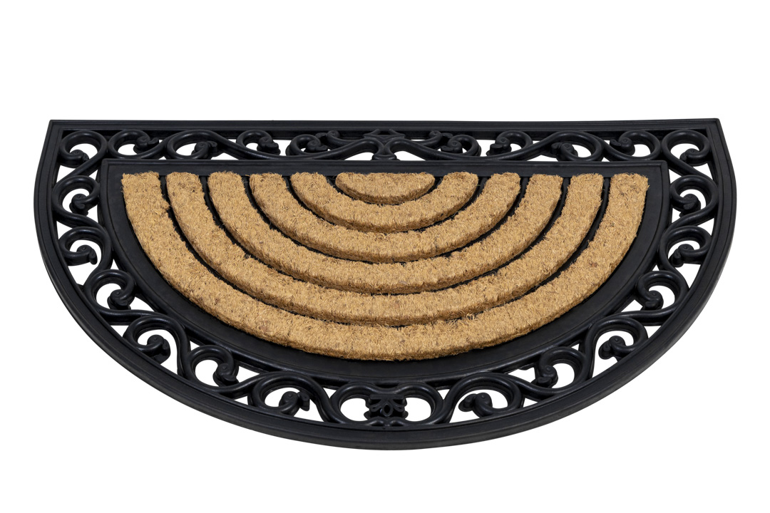 Je bent hier: Home / Deurmatten / Schrapende kokosmat met sierlijke rubberen rand, halfrond