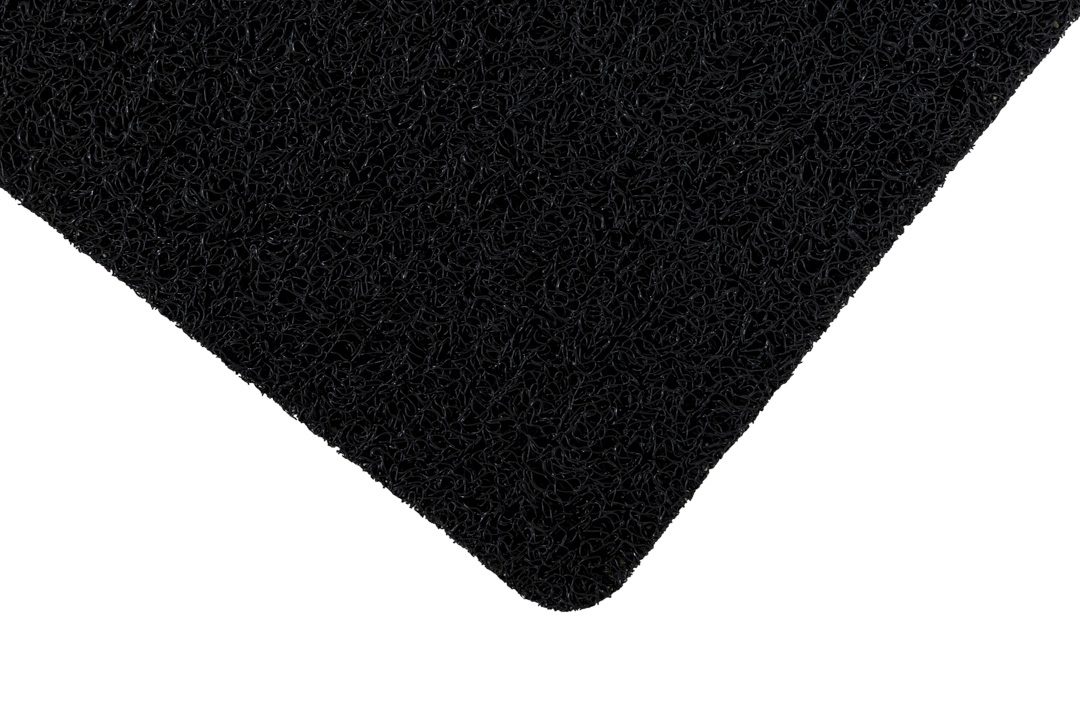 Deze zwarte buitenmat zorgt voor propere schoenen dankzij zijn lussenstructuur. Deze zwarte spaghettimat is een echte buitenmat. Door de schrapende werking van de lussen wordt alle vuil buitenshuis gehouden en door de open backing loopt het water eenvoudig door de mat weg.