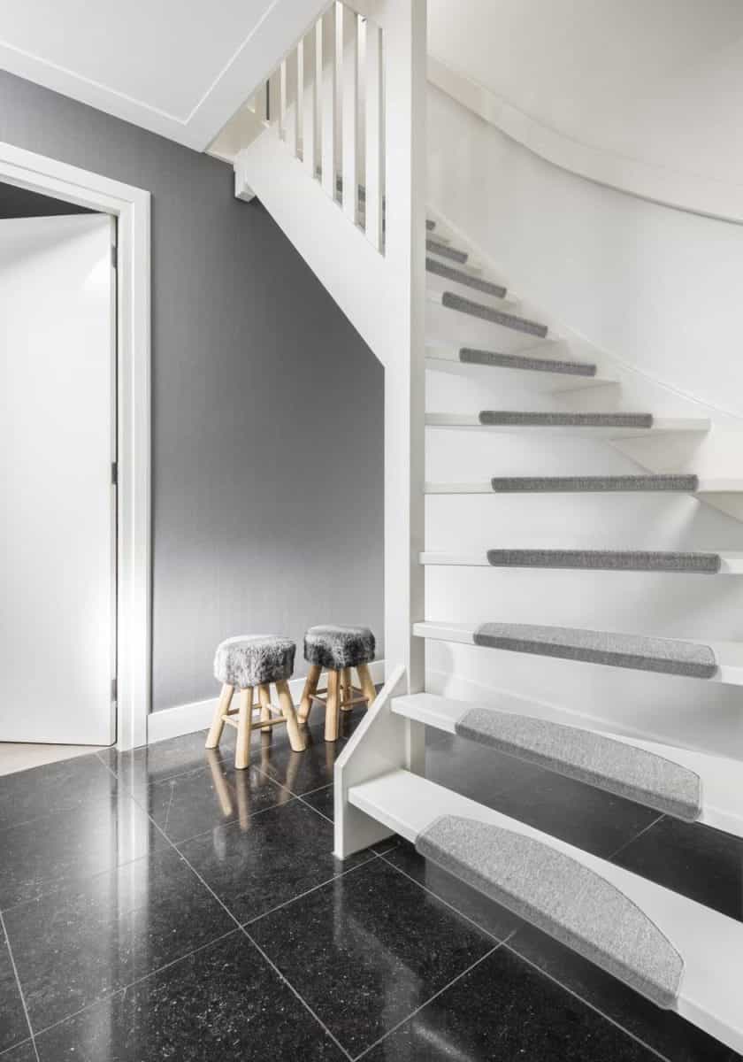 Een trapmat beschermt de trappen zodat de trap niet snel zal beschadigen. Bestel deze bouclé trapmat met afboording in de kleur grijs bij Onlinemattenshop.be.