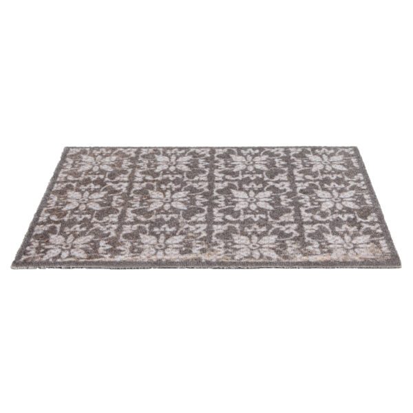 Deze ecologische droogloopmat bedrukt met beige retrotegels is behalve mooi ook nog eens milieubewust. De rug van de mat is namelijk voor 20% gemaakt van gerecycled materiaal en de mat kan op zijn geheel volledig gerecycleerd worden. Deze manier van produceren zorgt ervoor dat de fabrikant geen restafval meer heeft want dit wordt allemaal opnieuw gebruikt bij de productie van nieuwe matten. De mat heeft ook geen rubberen boord rondom maar een mooi geprint randje waardoor de mat er niet uitziet als een echte droogloopmat, daardoor kan hij ook perfect ergens anders worden neergelegd. De rug van de mat is antislip en de polyamide stof neemt vocht op en houdt vuil vast.