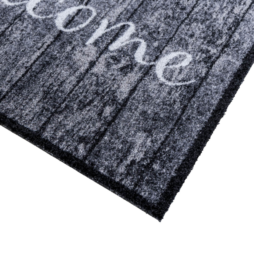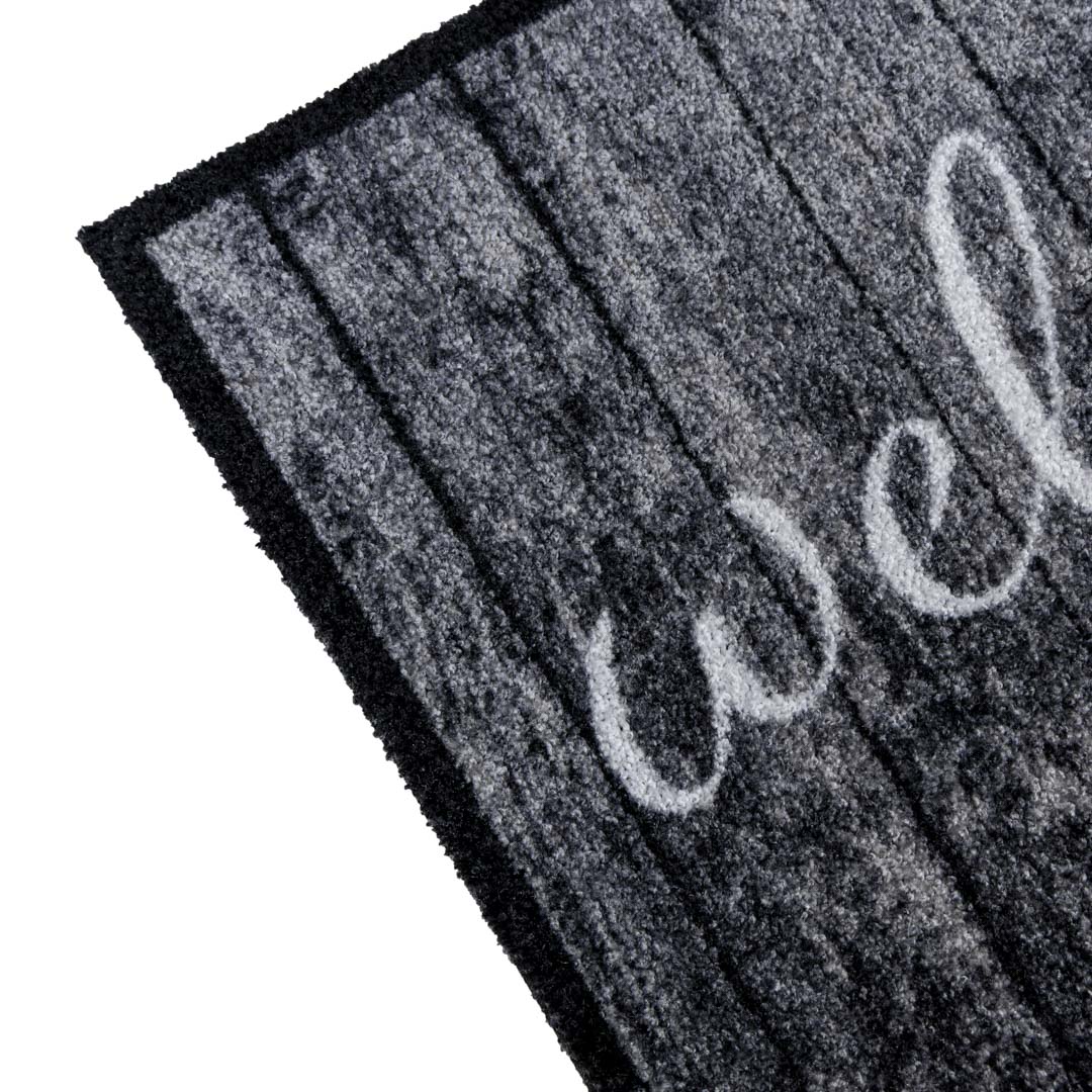 Deze ecologische droogloopmat welcome, grijs is behalve mooi ook nog eens milieubewust. De rug van de mat is namelijk voor 20% gemaakt van gerecycled materiaal en de mat kan op zijn geheel volledig gerecycleerd worden. Deze manier van produceren zorgt ervoor dat de fabrikant geen restafval meer heeft want dit wordt allemaal opnieuw gebruikt bij de productie van nieuwe matten. De mat heeft ook geen rubberen boord rondom maar een mooi geprint randje waardoor de mat er niet uitziet als een echte droogloopmat, daardoor kan hij ook perfect ergens anders worden neergelegd. De rug van de mat is antislip en de polyamide stof neemt vocht op en houdt vuil vast.